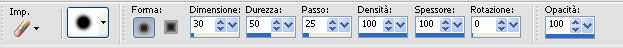 24. Attiva lo strumento Gomma con i seguenti settaggi: