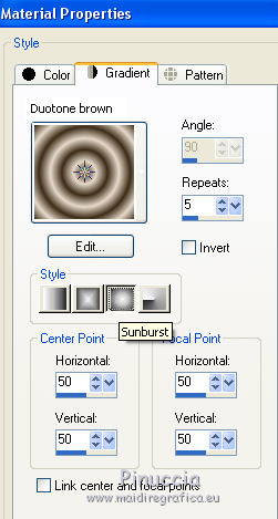 2. Set your foreground color to Gradient and select the gradient Duotone Brown or Corel_06_004, style Sunburst.