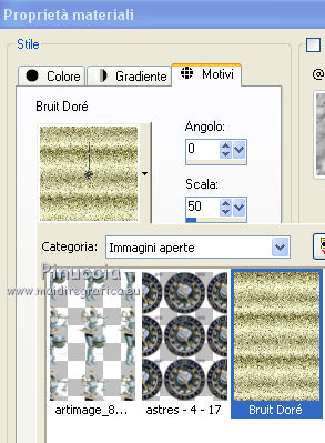 nella lista delle immagini aperte, seleziona il motivo Bruit Doré con i seguenti settaggi: