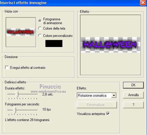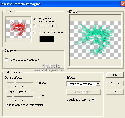 Effetti>Inserisci effetto immagine e seleziona Rotazione cromatica, con i seguenti settaggi.