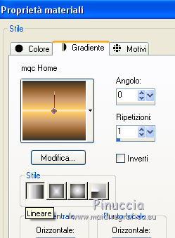 1. Passa il colore di primo piano a Gradiente e seleziona il gradiente mqc Home, con i seguenti settaggi.