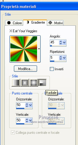 1. Passa il colore di primo piano a Gradiente, e seleziona il gradiente "X Eat Your Veggies", con i seguenti settaggi.