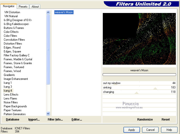 4. Effetti>Plugins>Filters Unlimited 2.0 - Kang 4 - Weaver's Moon.