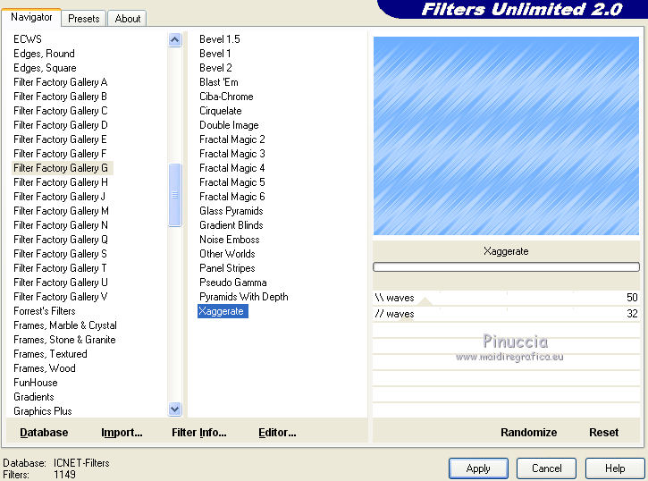 4. Effetti>Plugins>Filters Unlimited 2.0 - Filter Factory Gallery G - Xaggerate.