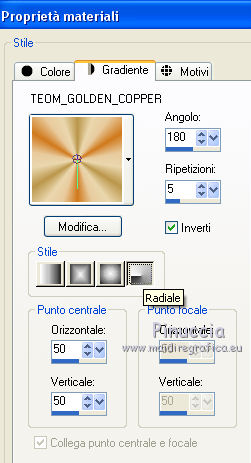 1. Passa il colore di primo piano a Gradiente, e seleziona il gradiente teom_golden_copper, stile Radiale.
