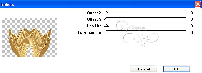 7. Effetti>Plugins>Graphics Plus - Emboss, con i settaggi standard.