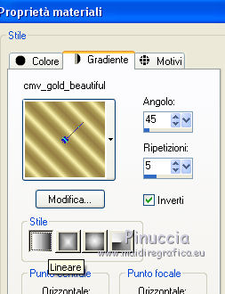 12. Passa il colore di primo piano a Gradiente, e seleziona il gradiente cmv_gold_beautiful con i seguenti settaggi.