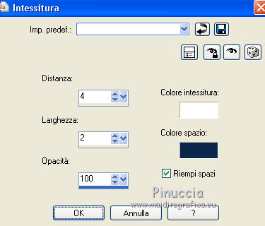 Colore intessitura bianco; colore spazio colore blu di primo piano.