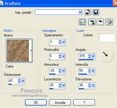 18. Effetti>Effetti di trama>Scultura, seleziona il motivo Carta, con i seguenti settaggi.