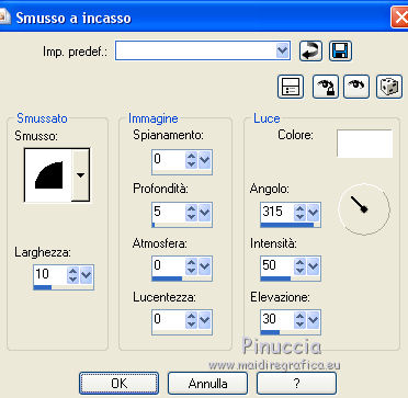 Effetti>Effetti 3D>Smusso a incasso, con i settaggi precedenti.
