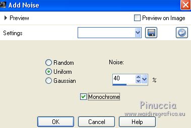 Repeat Adjust>Add/Remove Noise>Add Noise, same settings.