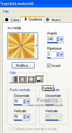 1. Passa il colore di primo piano a Gradiente, e seleziona il gradiente m.c.teddy, stile Sprazzo di luce.