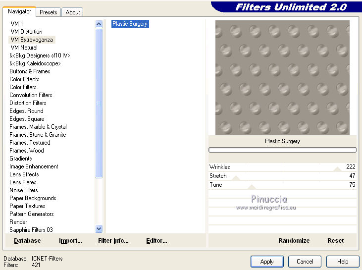 3. Effetti>Plugins>Filters Unlimited 2.0 - VM Extravaganza - Plastic Surgery.