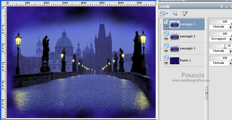7. Abbassa l'opacità del livello Paesaggio 1 al 70%.