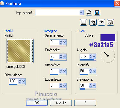 10. Effetti>Effetti di trama>Scultura - seleziona il motivo oro cmlstgold003,