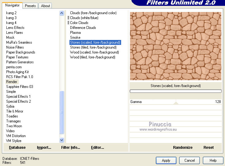 9. Effetti>Plugins>Filters Unlimited 2.0 - Render - Stones (scaled,fore-/background).