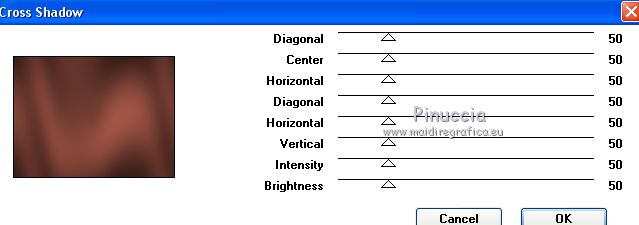7. Effetti>Plugins>Graphics Plus - Cross Shadow, con i settaggi precedenti.