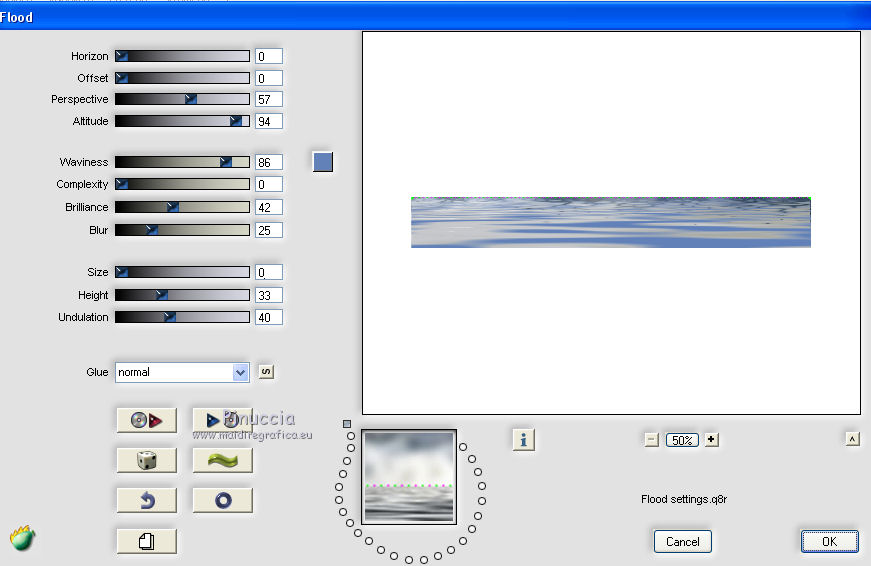 5. Effetti>Plugins>Flaming Pear - Flood - colore #6281b8.