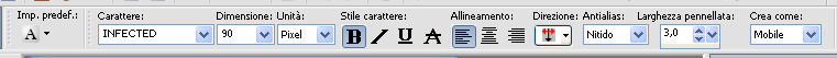 5. Attiva lo strumento Testo , font Infected, con i seguenti settaggi.