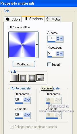 Passa il colore di primo piano a Gradiente e seleziona il gradiente RGSunSkyBlue, stile Radiale.