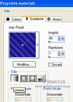 1. Passa il colore di primo piano a Gradiente, e seleziona il gradiente mqc Royal, stile Lineare.