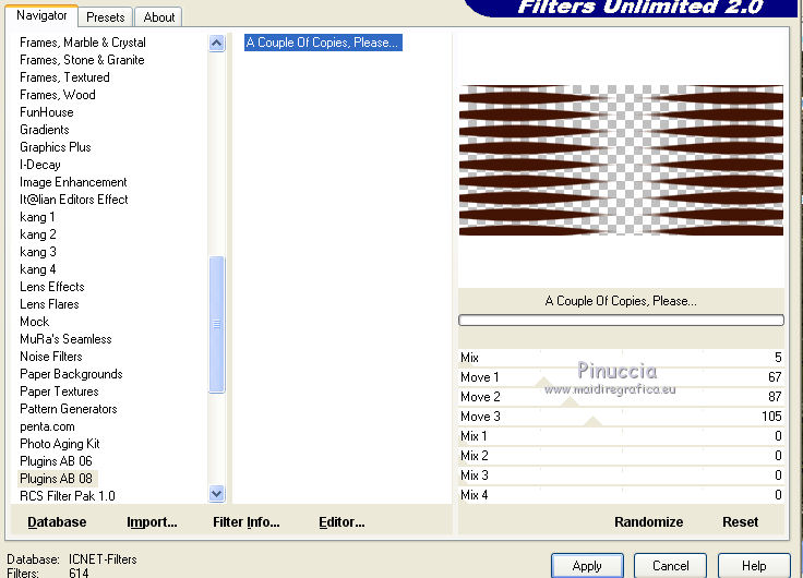4. Effetti>Plugins>Filters Unlimited 2.0 - Plugins AB08 - A Couple of Copies,Please.