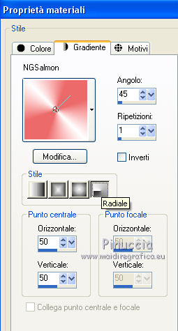 1. Passa il colore di primo piano a Gradiente, e seleziona il gradiente NGSalmon, stile Radiale.