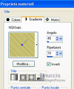 1. Passa il colore di primo piano a Gradiente, e seleziona il gradiente NGKhaki, con i seguenti settaggi.
