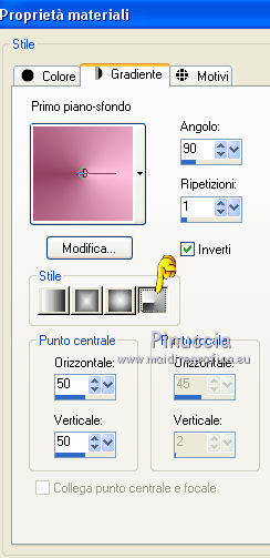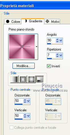 Passa il colore di primo piano a Gradiente, stile Radiale, con i seguenti settaggi.