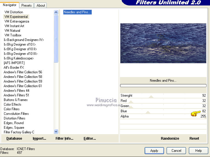 3. Effetti>Plugins>Filters Unlimited 2.0 - VM Experimental - Needles and Pins.