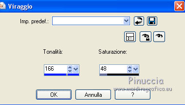 16. Regola>Tonalità e saturazione>Viraggio, con i settaggi precedenti.