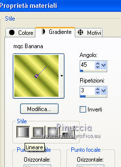 1. Passa il colore di primo piano a Gradiente, e seleziona il gradiente mwc Banana, con i seguenti settaggi.