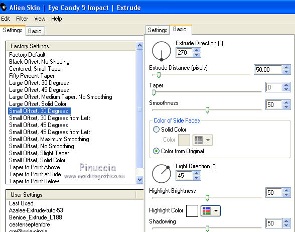 5. Effetti>Plugins>Alien Skin Eye Candy 5 Impact - Extrude.