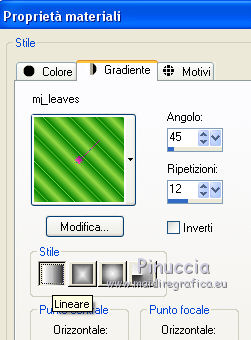 1. Passa il colore di primo piano a Gradiente e seleziona il gradiente mj_leaves, con i seguenti settaggi.