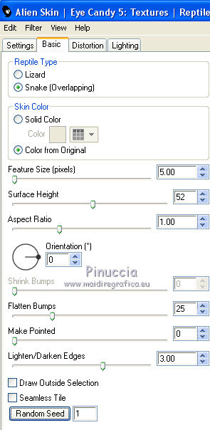 12. Effetti>Plugins>Alien Skin Eye Candy 5 Texture - Reptile Skin.