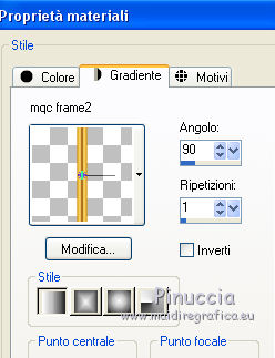 1. Passa il colore di primo piano a Gradiente, e seleziona il gradiente mcq Frame2, con i seguenti settaggi.
