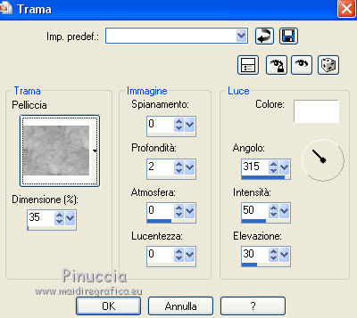 14. Effetti>Effetti di trama>Trama - seleziona la trama Pelliccia, con i seguenti settaggi.