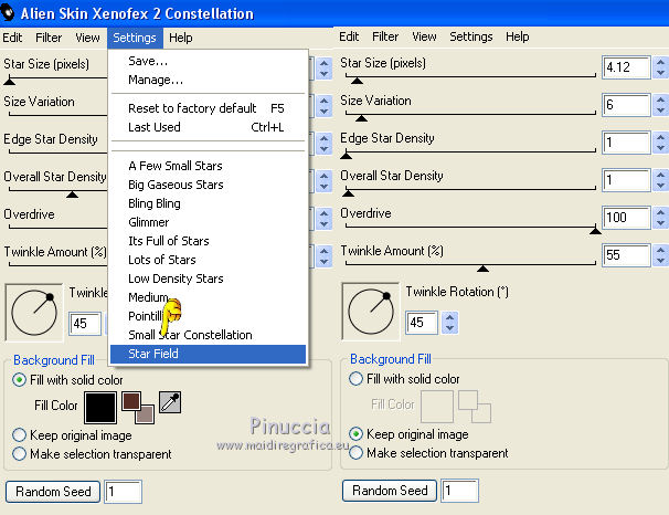 4. Effetti>Plugins>Alien skin Xenofex 2.0 - Constellation.