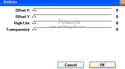 18. Effetti>Plugins>Graphics Plus - Emboss, con i settaggi standard.