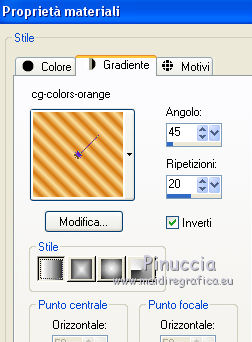 1. Passa il colore di primo piano a Gradiente, e seleziona il gradiente cg-colors-orange, con i seguenti settaggi.