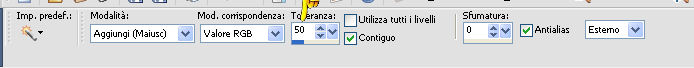 9. Attiva lo strumento Bacchetta magica con i seguenti settaggi.