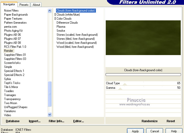 3. Effetti>Plugins>Filters Unlimited 2.0 - Render - Clouds (fore-/background color).