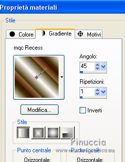 1. Passa il colore di primo piano a Gradiente, e seleziona il gradiente mqc_Recess, con i seguenti settaggi.