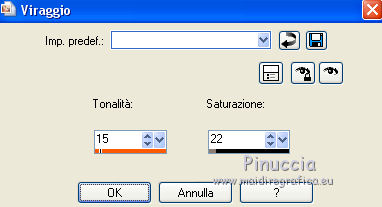 17. Regola>Tonalità e saturazione>Viraggio, con i settaggi precedenti.