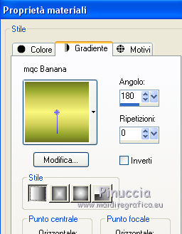 1. Passa il colore di primo piano a Gradiente, e seleziona il gradiente "mqc Banana" con i seguenti settaggi.