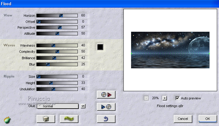 15. Effetti>Plugins>Flaming Pear - Flood, cambia soltanto horizon con 60 e ok.