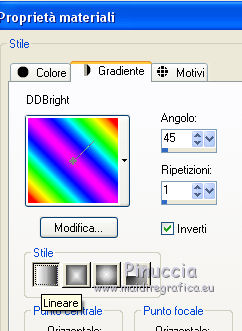 1. Passa il colore di primo piano a Gradiente, e seleziona il gradiente DDBright, con i seguenti settaggi.