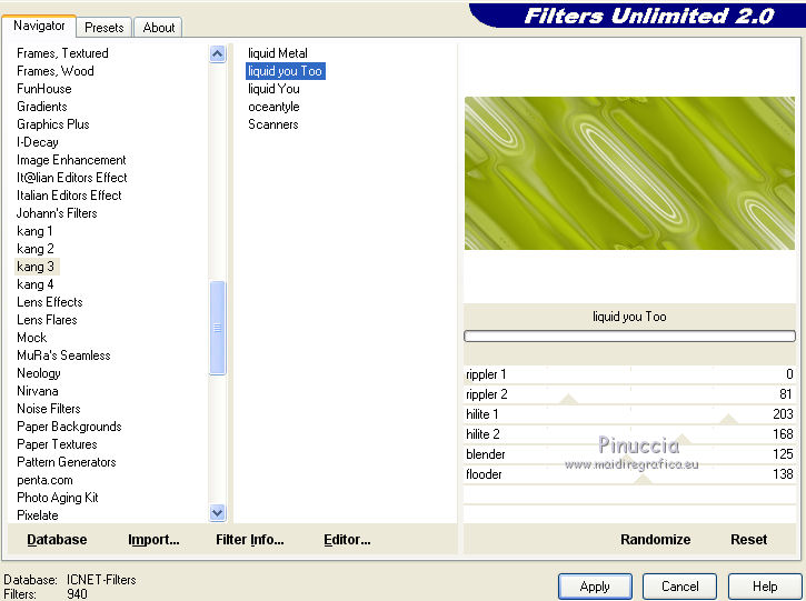 4. Effetti>Plugins>Filters Unlimited 2.0 - Kang 3 - Liquid you too.