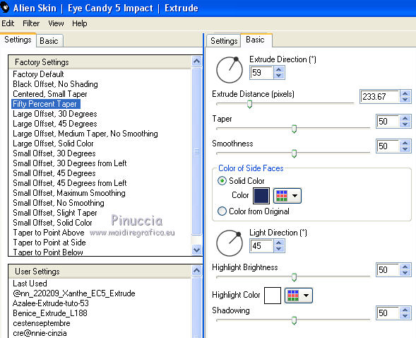 9. Effetti>Plugins>Alien Skin Eye Candy 5 Impact - Extrude.