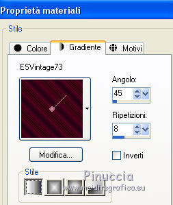 1. Passa il colore di primo piano a Gradiente e seleziona il gradiente ESVintage73, con i seguenti settaggi.